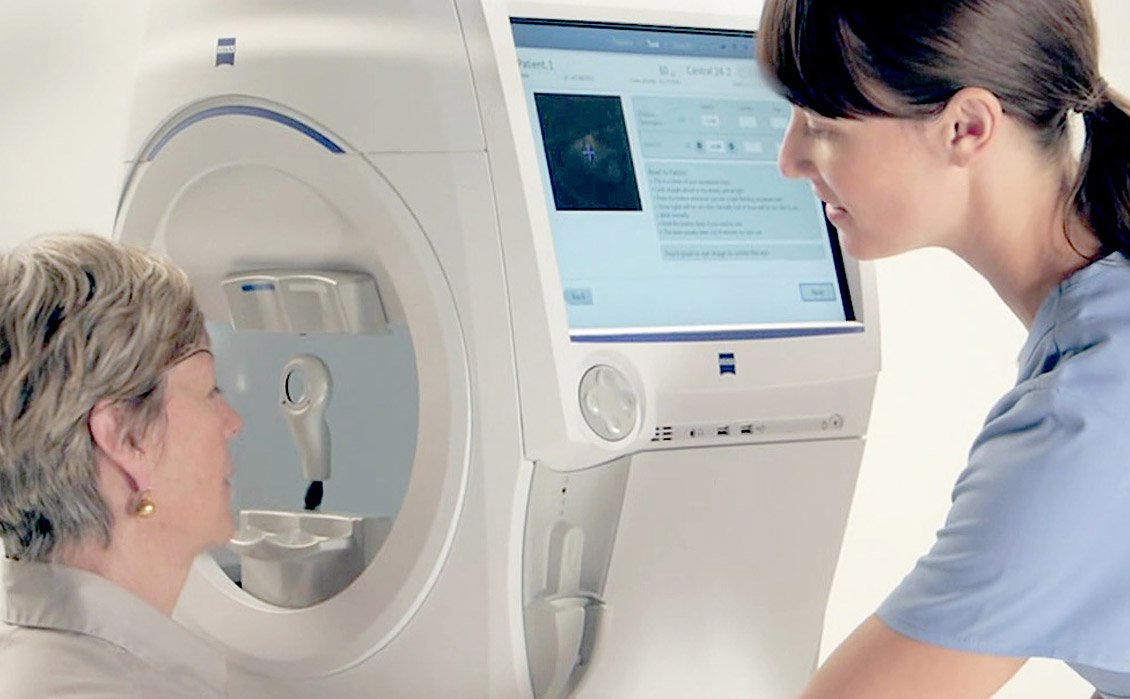Este aparelho é utilizado para medir o campo visual e é imprescindível como exame preventivo e de acompanhamento no glaucoma e em patologias que envolvam a retina e o nervo ótico, bem como em algumas patologias neurológicas.